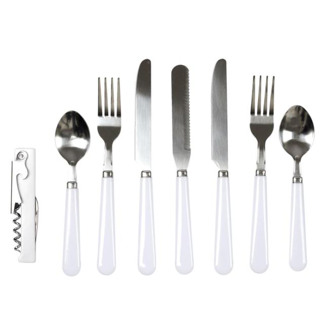 - les couverts pour 2 personnes : 2 couteaux, 2 fourchettes et 2 cuillères